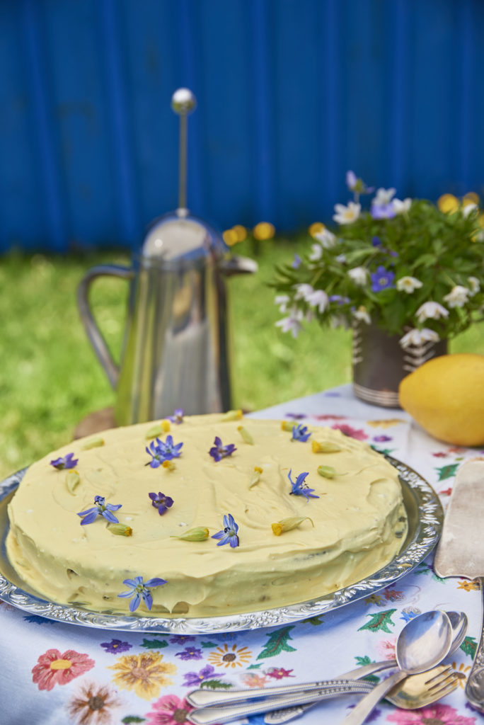 Jahtunud kook immuta pealt 1 apelsinist ja 1/2 sidrunist pressitud mahlaga. Pane safraniniidid kuuma vette likku. Vahusta kookoskoor kõvaks vahuks, kalla läbi sõela hulka safrani vedelik** ja lisa agaavisiirup. Sega läbi ning määri ühtlaselt koogile. Kaunista pealt näiteks meelepäraste lilledega või riivitud apelsinikoorega ja serveeri kohe.