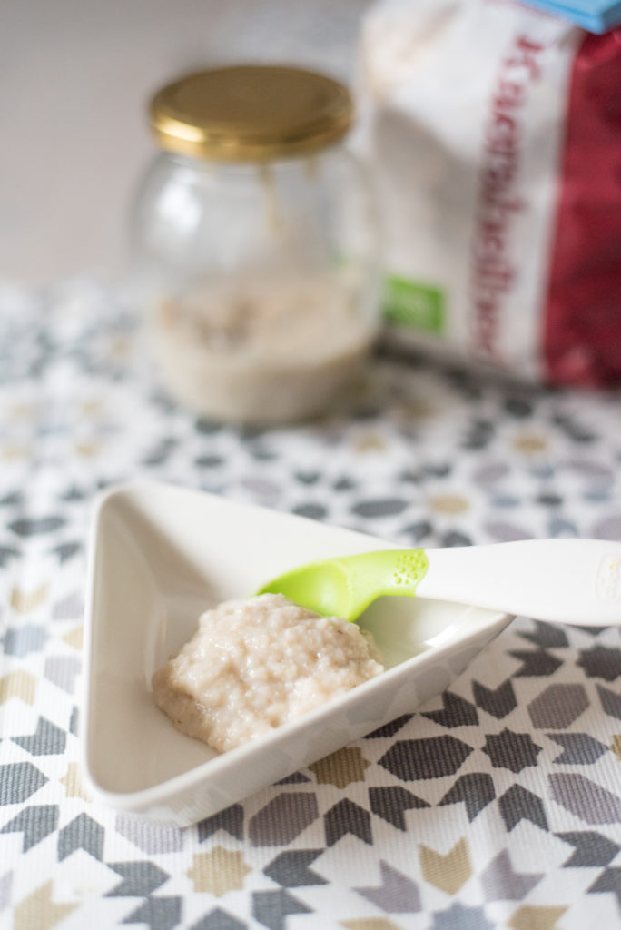 **Sobiv konsistens on väikesele beebile esimese toidu puhul vedel ja voolav püree, milles pole teralisi tükke. Kui tahta eriti pehmet püreed, võib pudru veel lisaks püreestamisele suruda ka läbi peene sõela, ent mina oma pojale ei ole nii peenikest püreed pidanud vajalikuks teha.