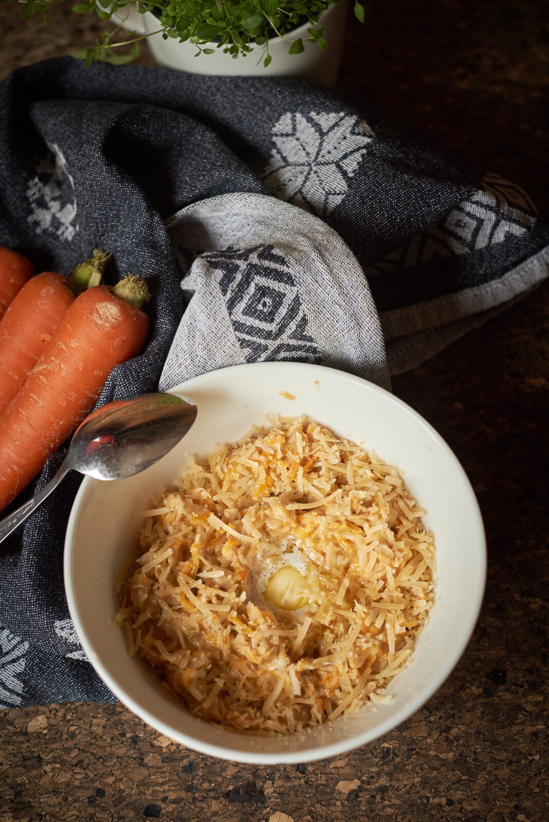 Idee osas pean siinkohal tänama toidublogijat Ragne Värki. Lugesin Naistelehest tema intervjuust, et aegajalt lisab ta putrudele porgandit – vau! kihvt mõte, millele ma ise varem tulnud ei ole ning otsustasin tema eeskujul järele proovida. Esmakordsel tegemisel sai puder endale kaaslaseks riivitud porgandi ja tubli peotäie parmesani, aga tulemuseks oli tiba liiga juustune kooslus, seega kuigi ma väga armastan juustu, soovitan siinkohal juustu lisada mõõdukalt 🙂