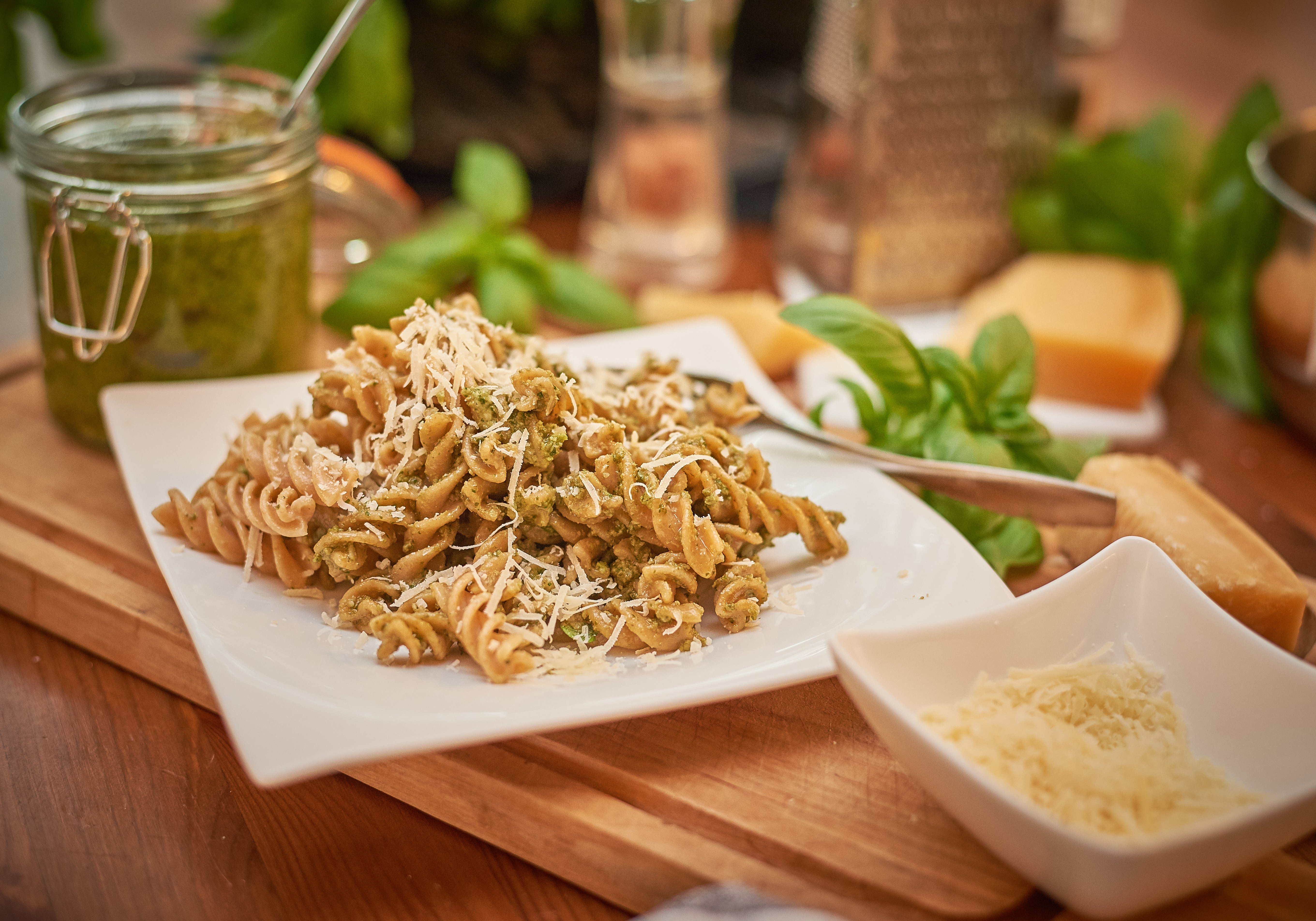 Retsept sai kirja Pere ja Kodu ajakirja köögirubriigi jaoks septembris 2018. Igasuguste keerukamate kunsttükkide vahele on see pestoga pasta minu argipäevade lemmik. Tõttöelda pole argiõhtul enamustel meist aega, et hakata lasanjet valmistama või suppi keetma ning siis tuleb appi 15-minuti pasta. Isegi kui teha pesto ise, võtab see kõik kokku maksimaalselt 20 minutit. Lisaboonusena on see toit ka koolilapsele igati jõukohane – pane koolijütsile pesto kappi ootele ja laps saab koju jõudes endale ise toitva söögi teha!