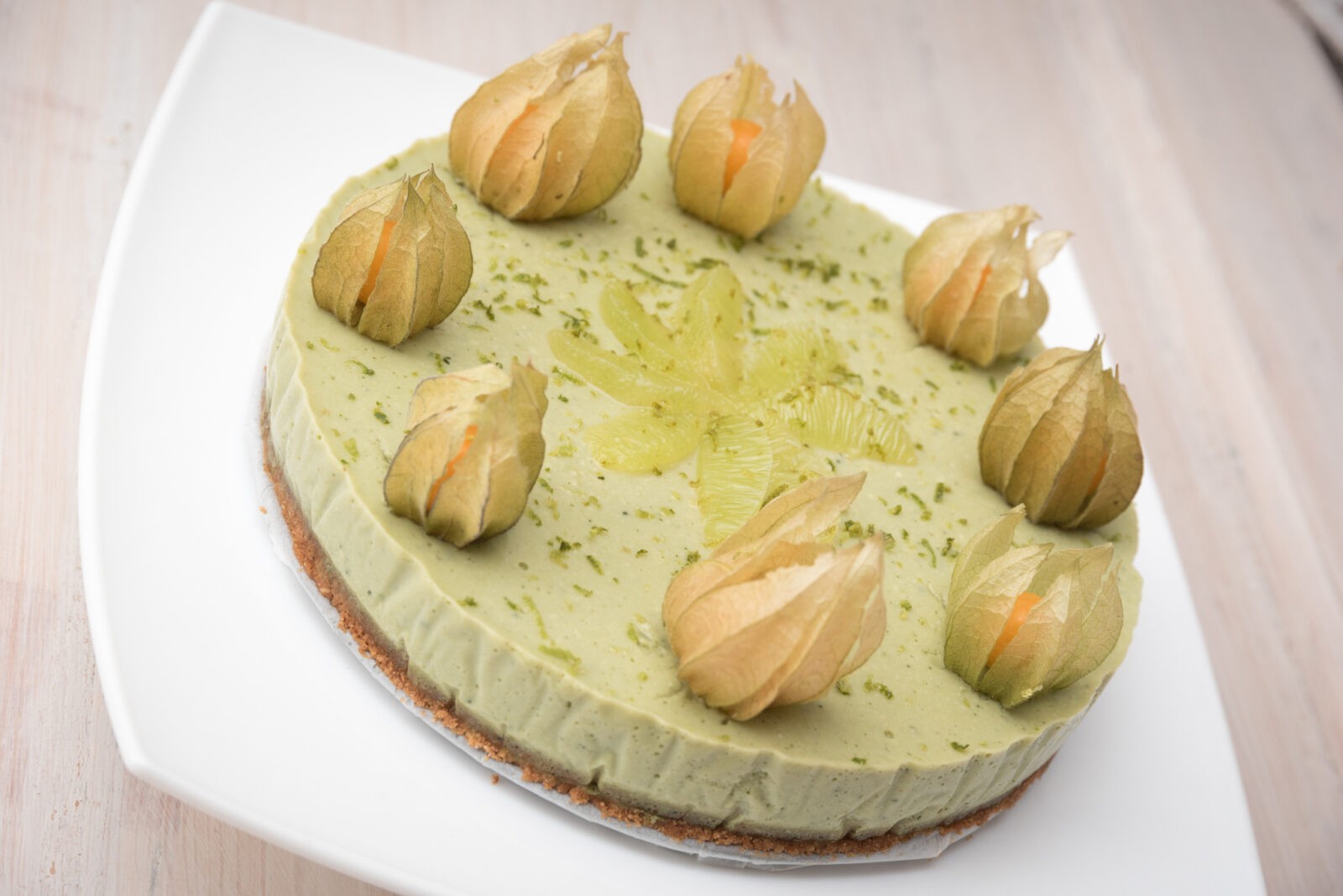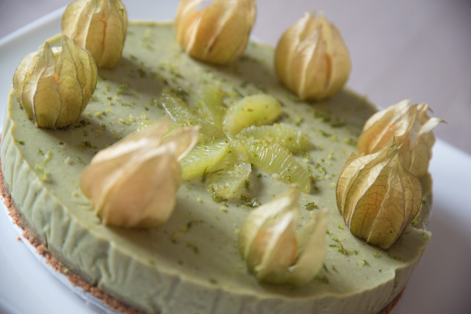 100% vegan, gluteenist ja piimatoodetest prii. Kui on viitsimist, võib teha veel peale ka laimimahla tarrendi, kuhu sisse panna kaunistuseks fileeritud laimi ja füüsaleid, ent see jäägu iga kodukoka oma valikuks 🙂 Pealne tarrendi kiht toob esile rohkem laimi maitset ja annab koogile tordilikuma välimuse, aga kook on ülimalt maitsev ka ilma selle lisapingutuseta. Pealseks kihiks tarreta 2 laimi pressitud mahl agar-agar’iga ning maitsesta agaavisiirupiga. Kui Sinu jaoks ei ole vegan-aspekt koogi juures oluline, siis soovitan torti tarretada pigem zelatiiniga, kuna see on efektiivsem ja tarretab tõhusamalt. Katte tarretamiseks kasuta sel juhul 4 zelatiinilehte ning laimikihi tarretamiseks 2 lehte.