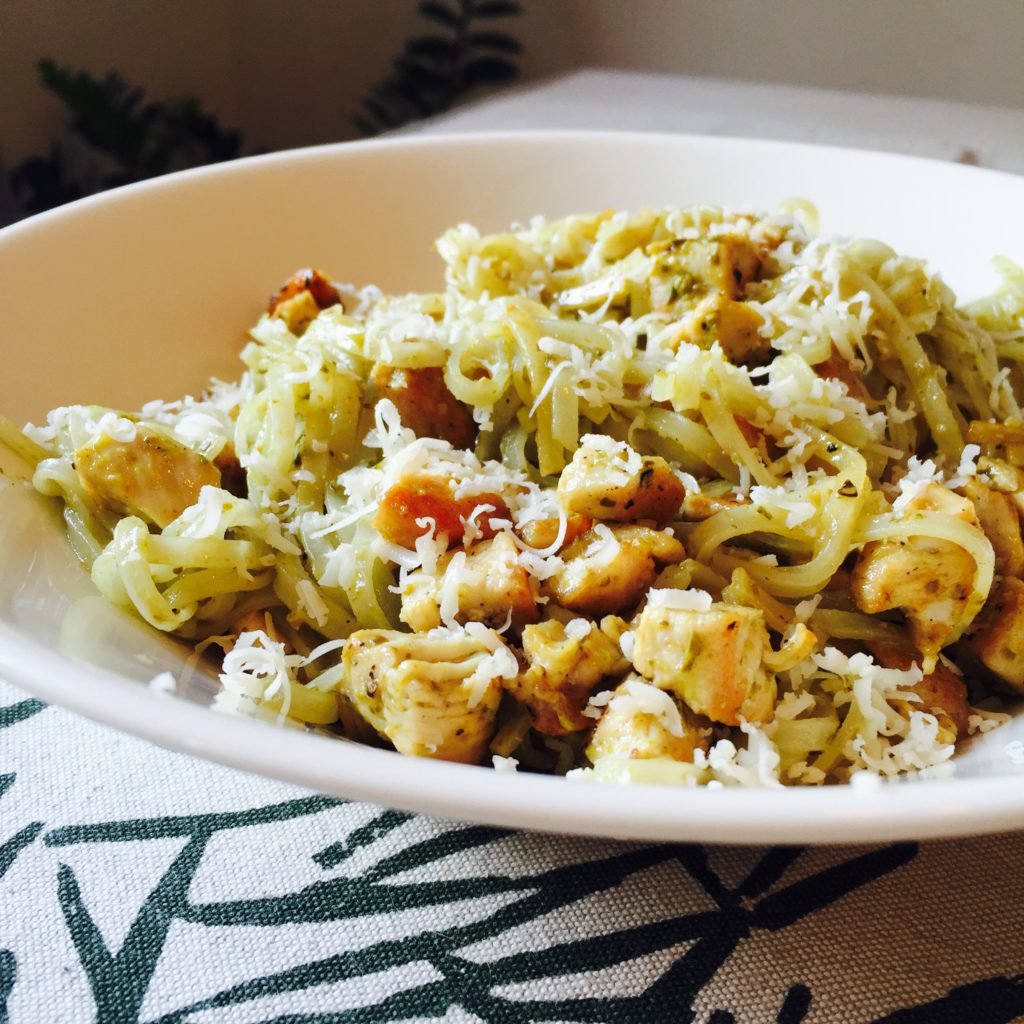 Gluteenivabaks eineks on hea alternatiiv riisinuudlid, mille GI on keskmisel tasemel (ca 50-60). Riisinuudlite valmistamine on veidi teistsugune kui all kirjeldatud spagettide puhul. Valmistamiseks keeda vesi ning võta seejärel pott tulelt, lisa kuuma vette sool ja riisinuudlid ning lase neil seista 3-4 min. Seejärel vala nuudlid sõelale ja sega kokku kana ning pestoga.