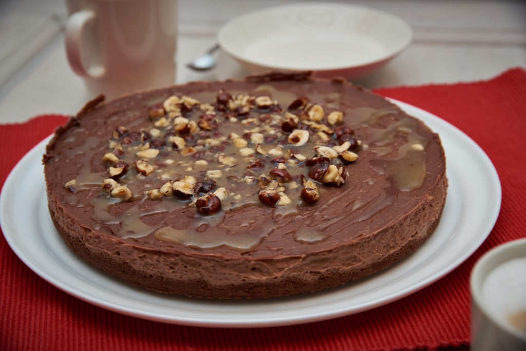 Kaunista kook pealt sarapuupähklitega ning nirista peale soolakaramell.